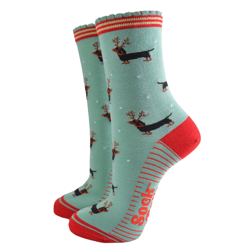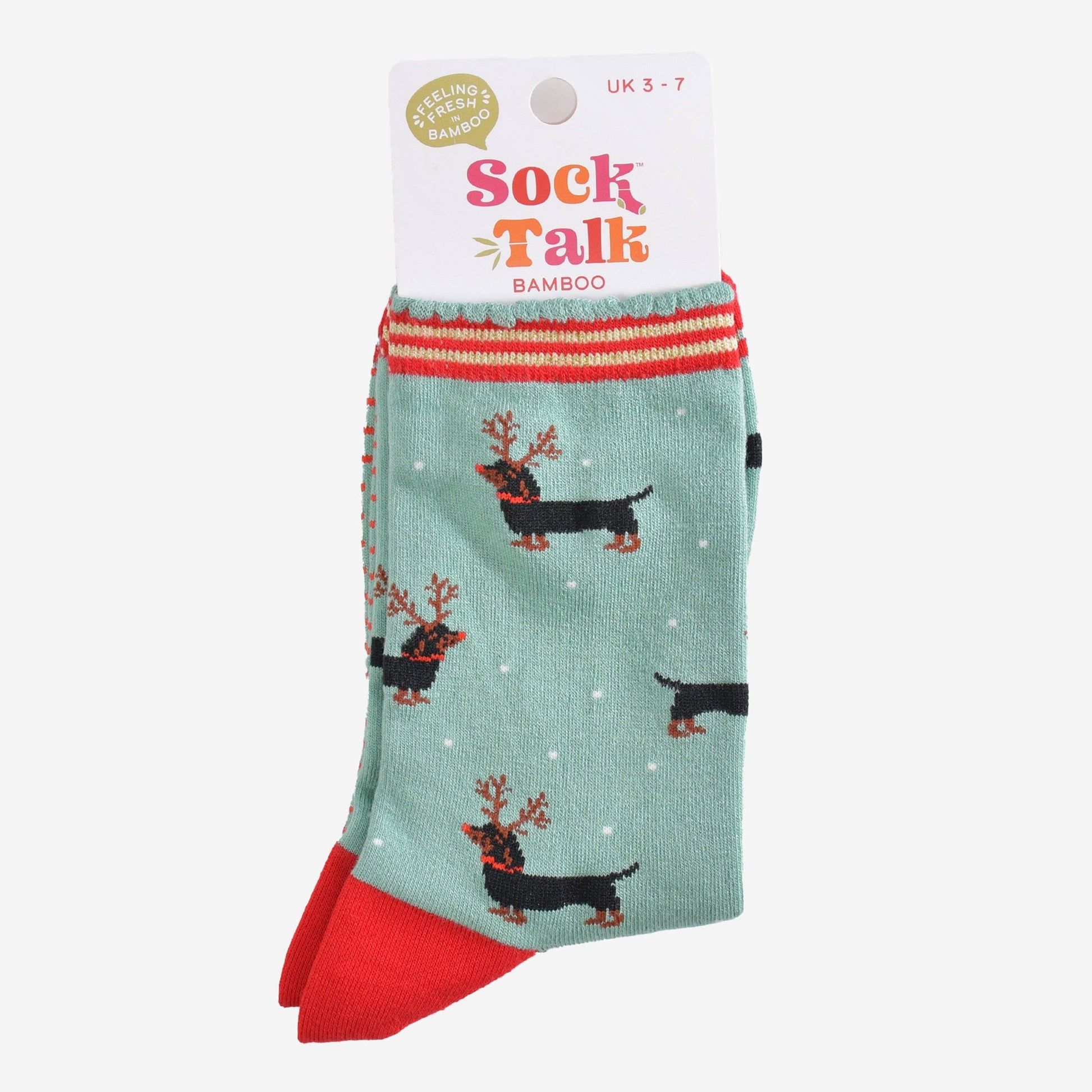Bambussocken für Damen — Mintgrün/Rot