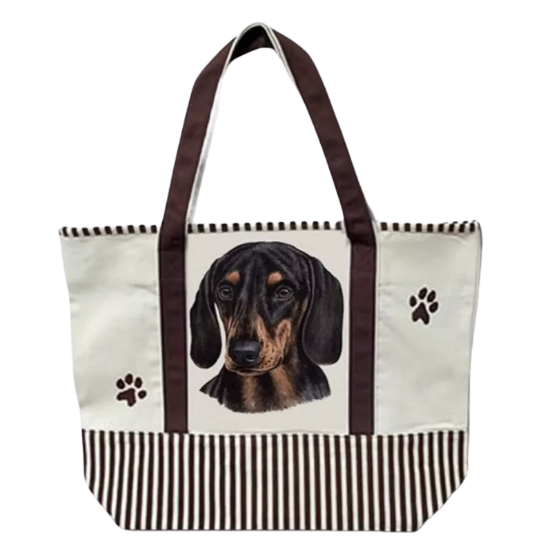Diese Dackel-Tragetasche ist nicht nur ein praktischer Begleiter für den Alltag, sondern auch ein echter Hingucker für alle Hundefreunde! Mit einem großen, liebevoll dargestellten Dackelportrait auf der Vorderseite und charmanten Pfotenabdrücken als Akzent sorgt diese Tasche dafür, dass du überall einen bleibenden Eindruck hinterlässt. Ob beim Einkaufen, in der Bibliothek oder einfach auf einem Spaziergang – diese Tasche zeigt, dass dein Herz für Hunde schlägt und Modebewusstsein hat.