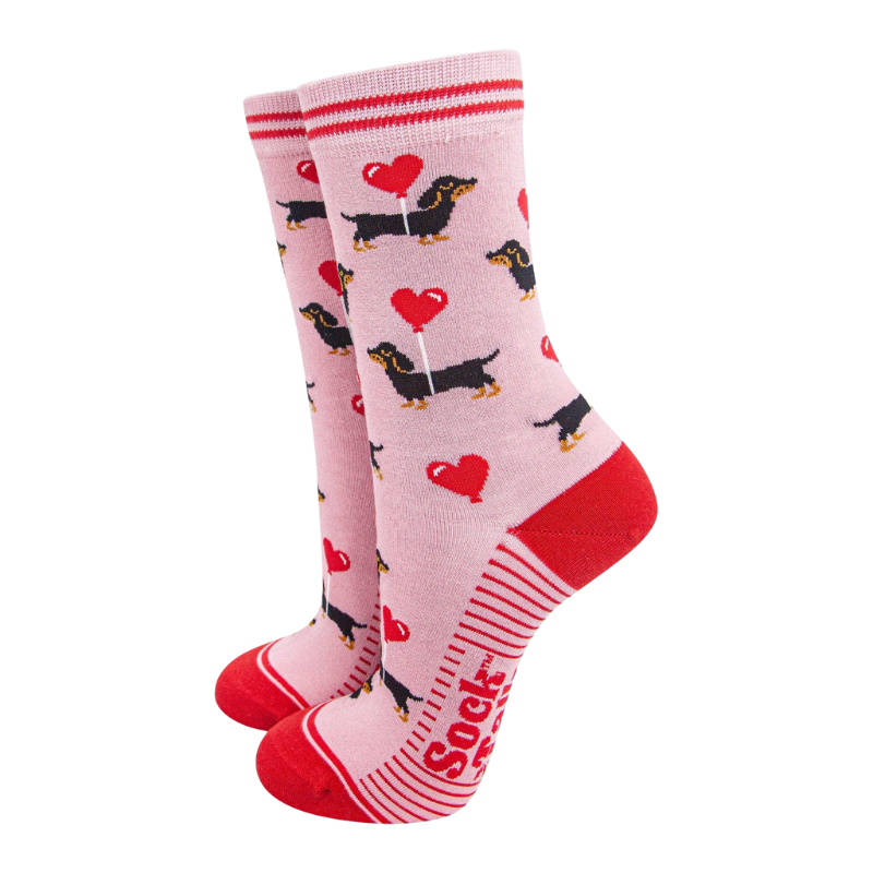 Damen-Bambussocken - Hellrosa/Rot, Dackel