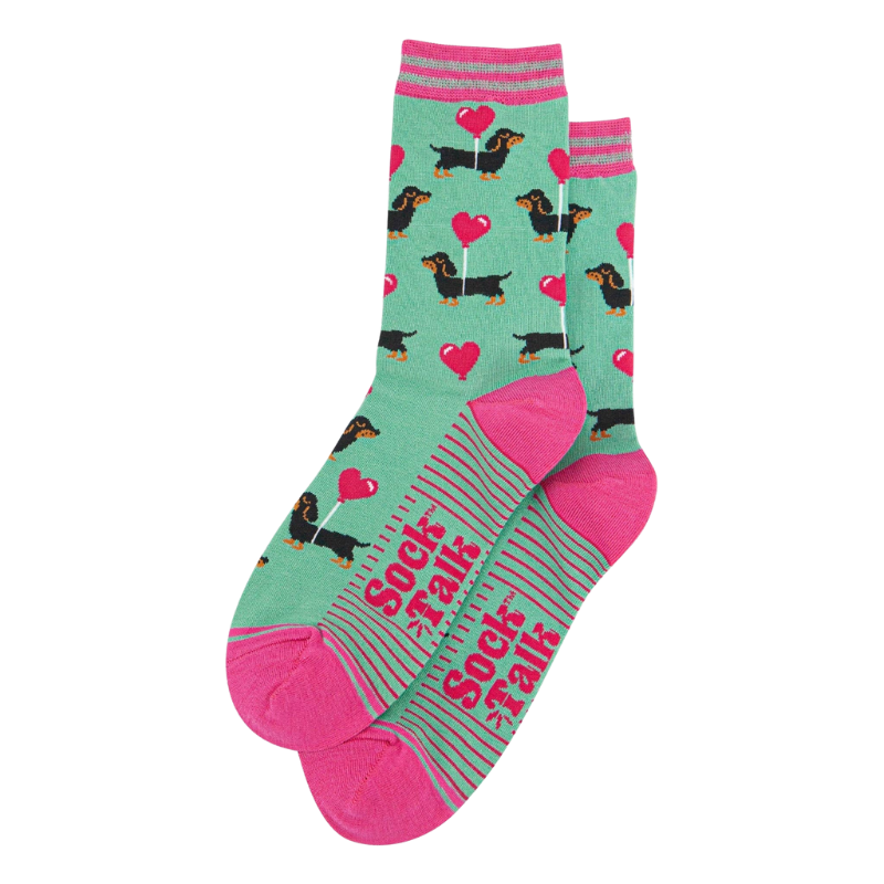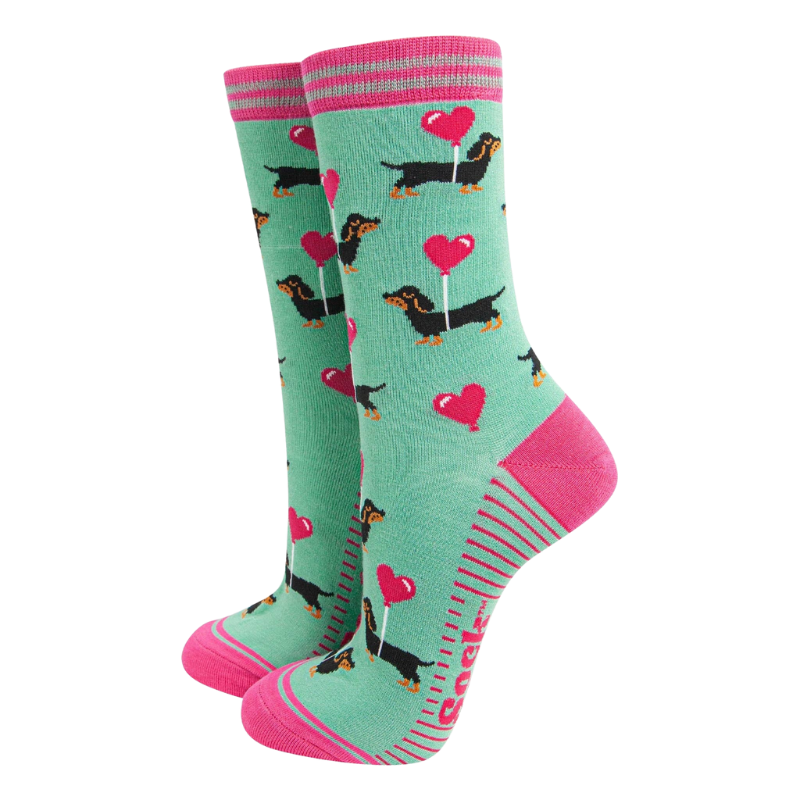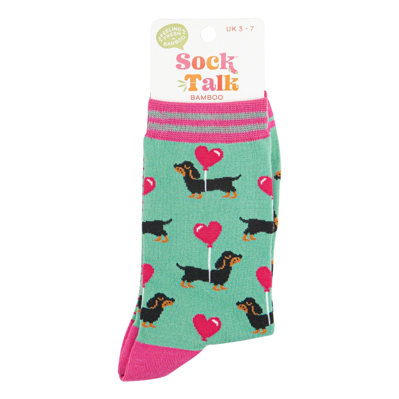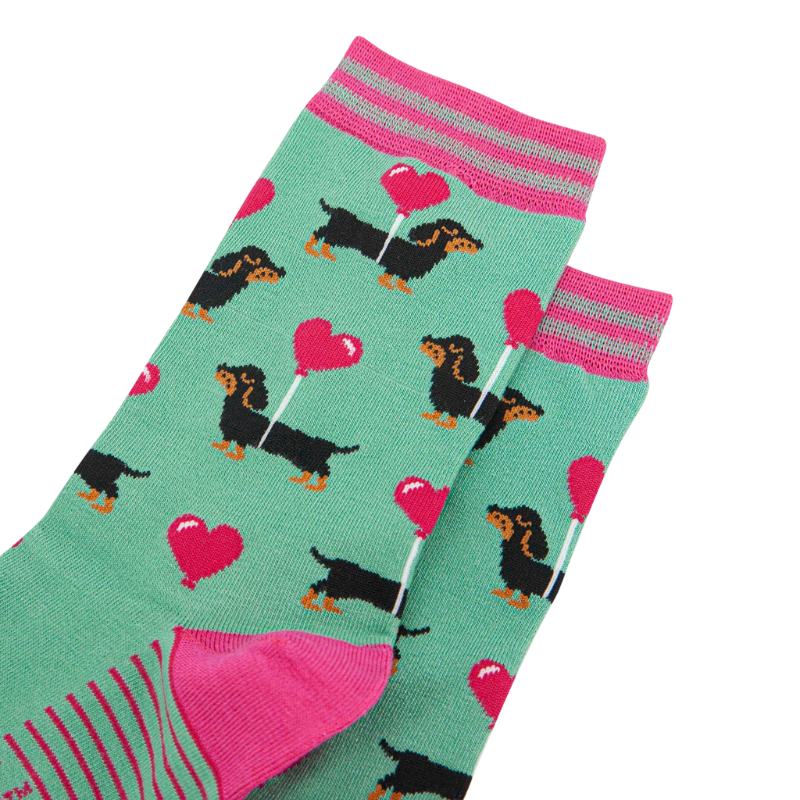 Damen-Bambussocken - Minze, Dackel-Liebesherz-Ballon