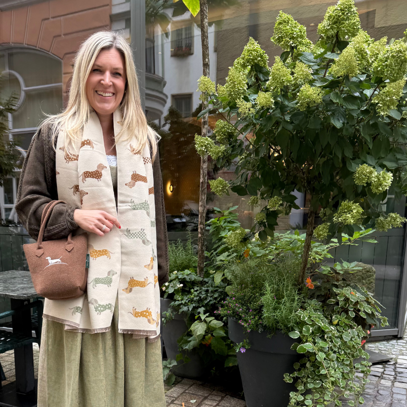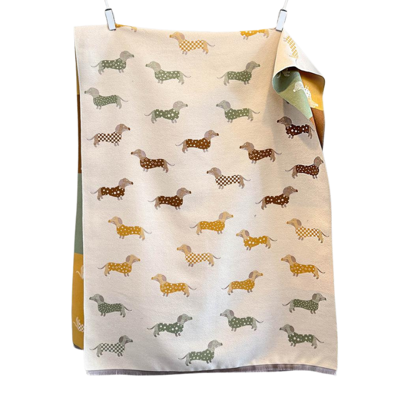 Unsere superweichen Wendeschals sind nicht nur ein echter Hingucker, sondern auch eine Liebeserklärung an den wohl charmantesten Vierbeiner der Welt. Auf der einen Seite Dackel mit Punkten, Karos und ganz viel Charakter – auf der anderen Seite… noch mehr Dackel! Ob elegant in Blau oder natürlich in Beige: Dieser Schal passt zu fast jedem Outfit und macht jeden Spaziergang zur kleinen Modenschau.